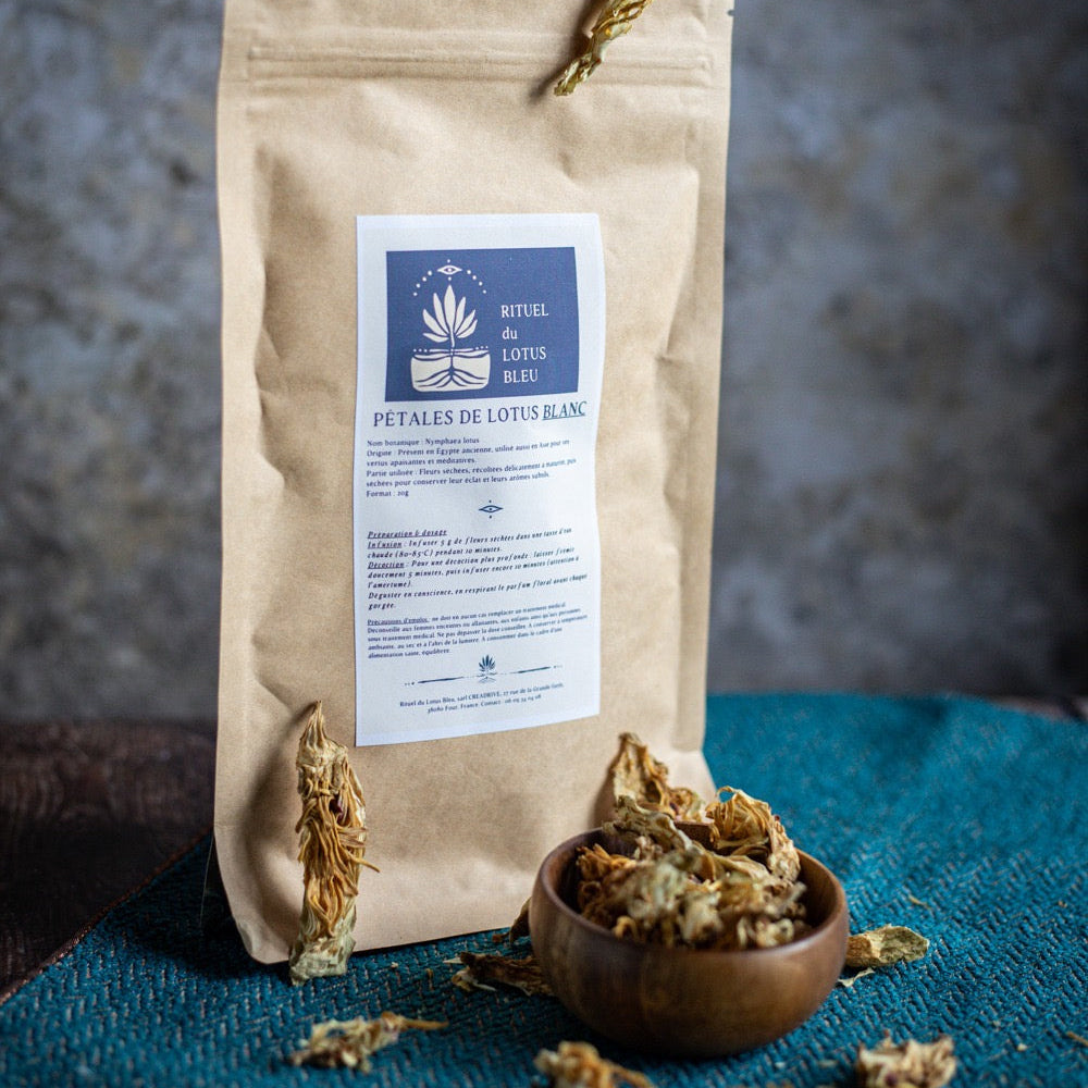 Voici nos Pétales de Fleurs de Lotus Blanc : Nymphaea lotus.