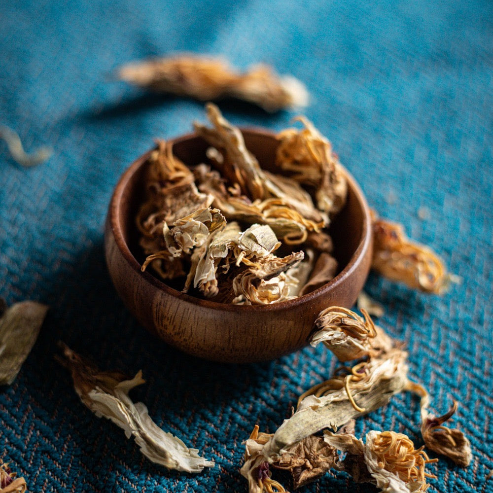 -Ajoutez 1 C.à.C de pétales de Lotus et laissez-les vous accompagner dans ce rituel de bain.