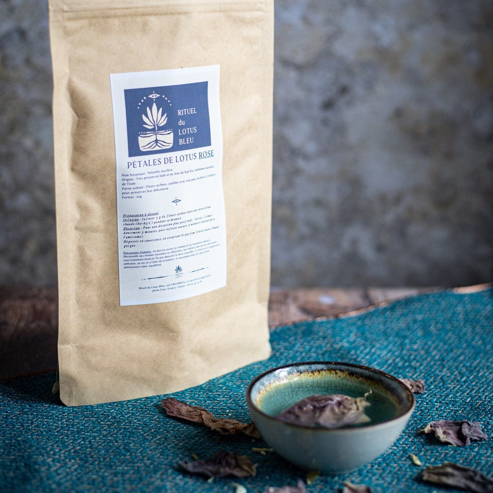 -pour 300ml d'eau froide, vous pourrez faire infuser 1 c.à.c de pétales Lotus,