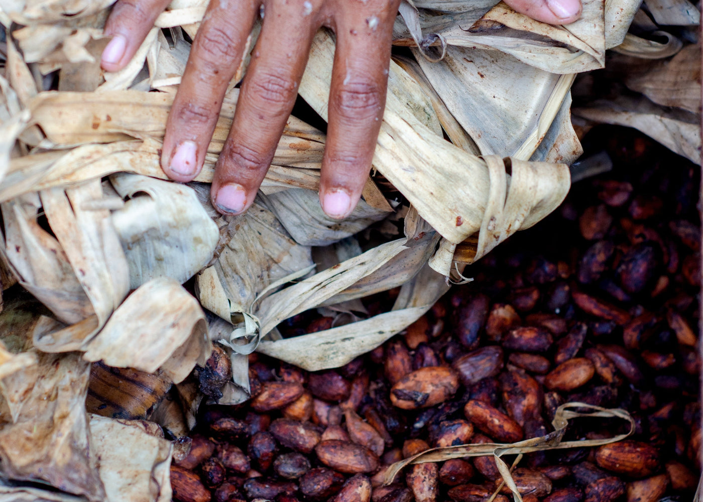 *Usage des feuilles de bananier : au Venezuela comme dans d'autres zones d'élevage, lors de l'étape de la fermentation, les fèves sont souvent recouvertes de feuilles de bananier fraîches, qui :