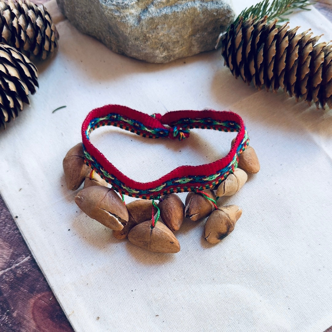 Shaker avec lanière traditionnelle fabriqué à la main au Pérou. Cet instrument créé un son assez magique pour accompagner nos chants durant les Cérémoniels et Rituels avec le Cacao.
