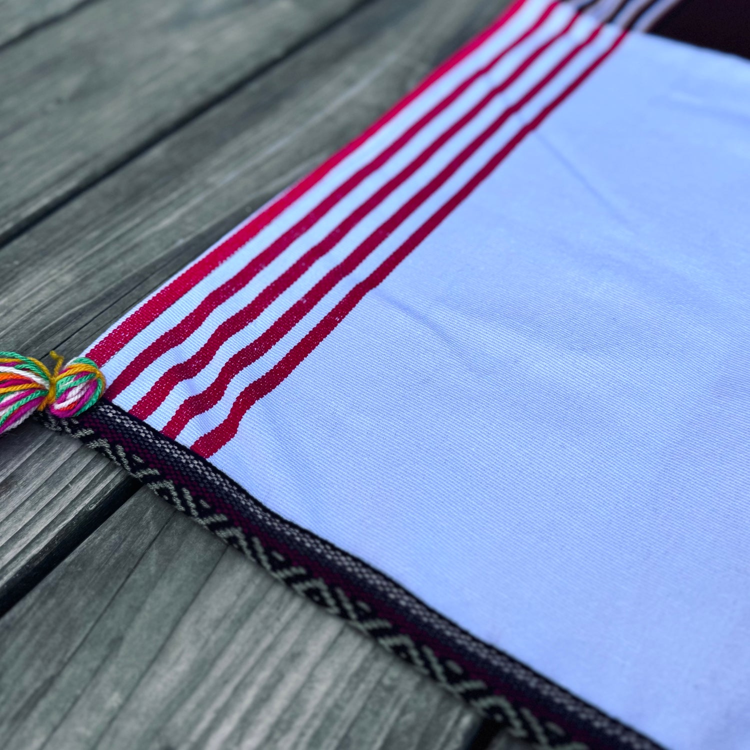 Par choix et par respect de leurs traditions, de leurs terres, nous n’avons pas souhaité appelé ce tissus « Mesa », car à nos yeux la Mesa est tissée pour des chamanes, pour des guérisseurs, pour accompagner leur travail extraordinaire validé par leur communauté.