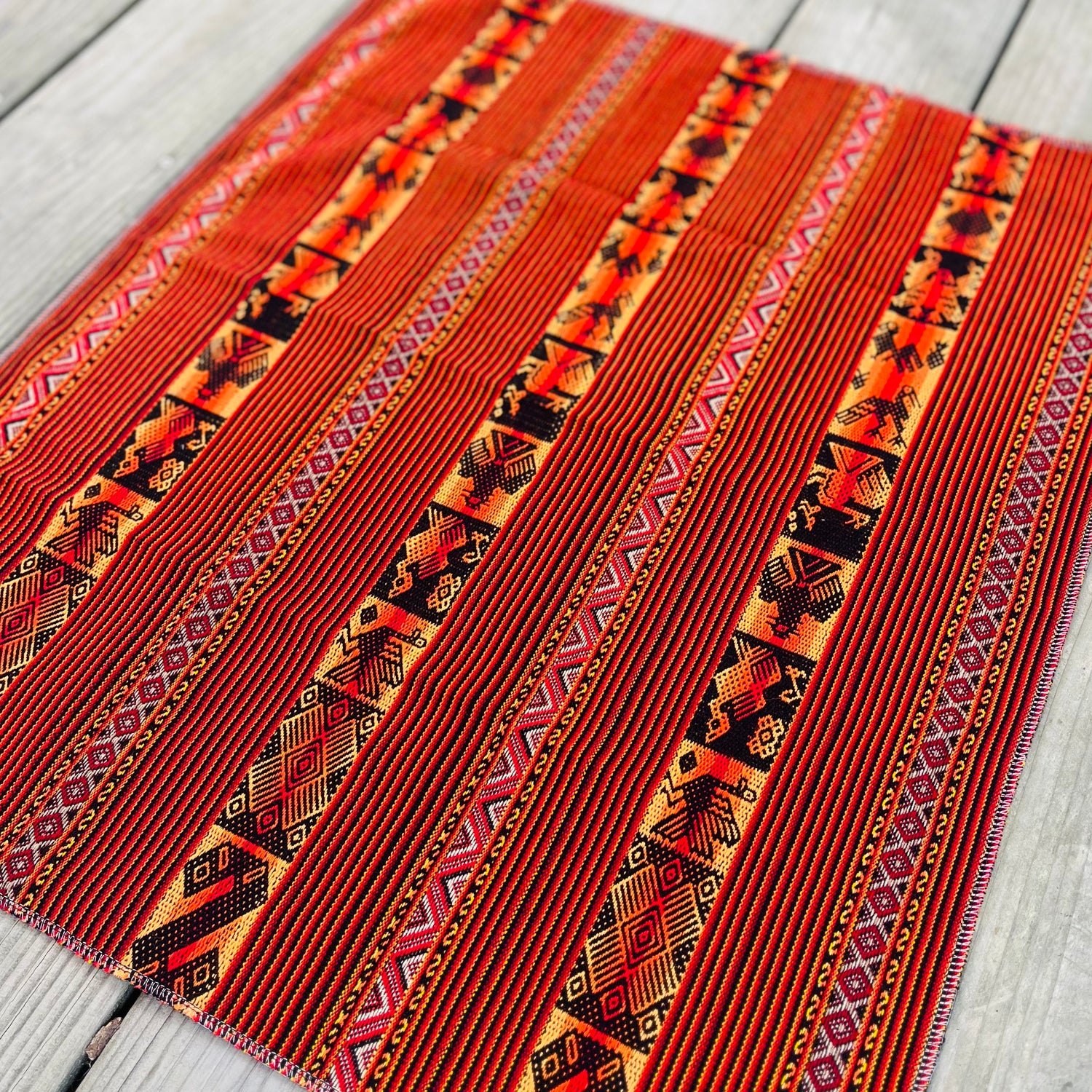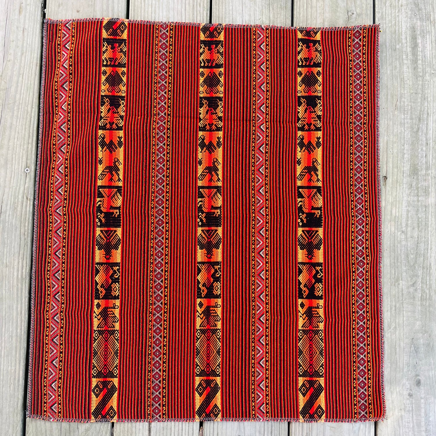 Par choix et par respect de leurs traditions, de leurs terres, nous n’avons pas souhaité appelé ce tissus « Mesa », car à nos yeux la Mesa est tissée pour des chamanes, pour des guérisseurs, pour accompagner leur travail extraordinaire validé par leur communauté.