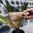 « Elle est née à ma demande, pour m’accompagner partout où je veux boire mon Cacao Sacré. À la montagne comme à la mer, au bord du rivière ou sous un arbre. Je l’accroche à on sac à dos, elle résiste aux chocs, elle est toujours propre, douce et confortable. Elle ne laisse pas l’empreinte de son goût à Cacao ». -Julie