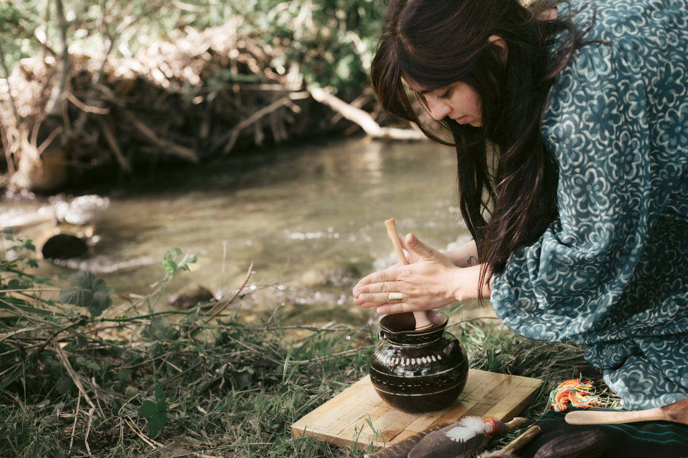 Avant de le préparer, on se relie à soi et à son espace. On pose les mains sur la terre, sur l'autel. On respire avec eux.