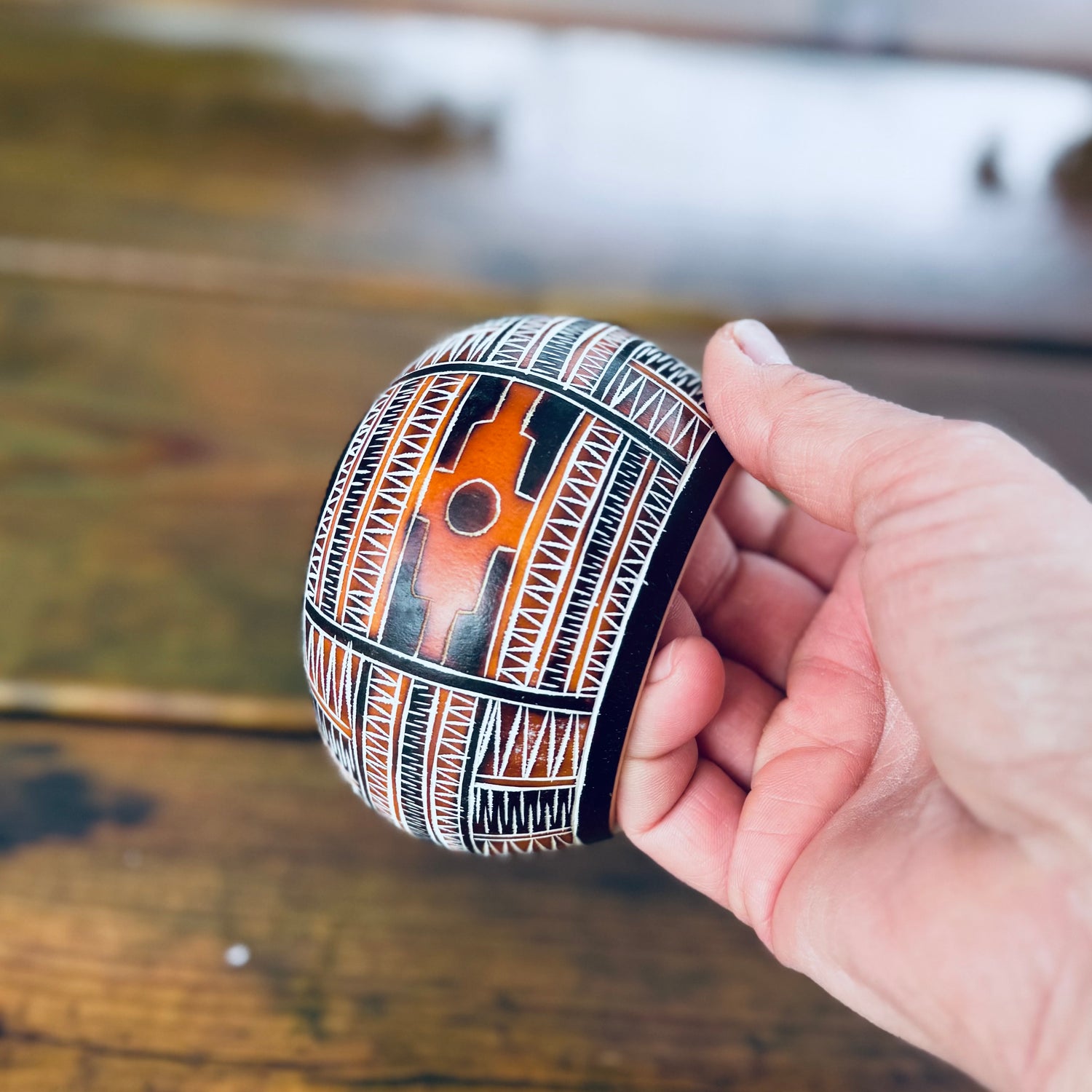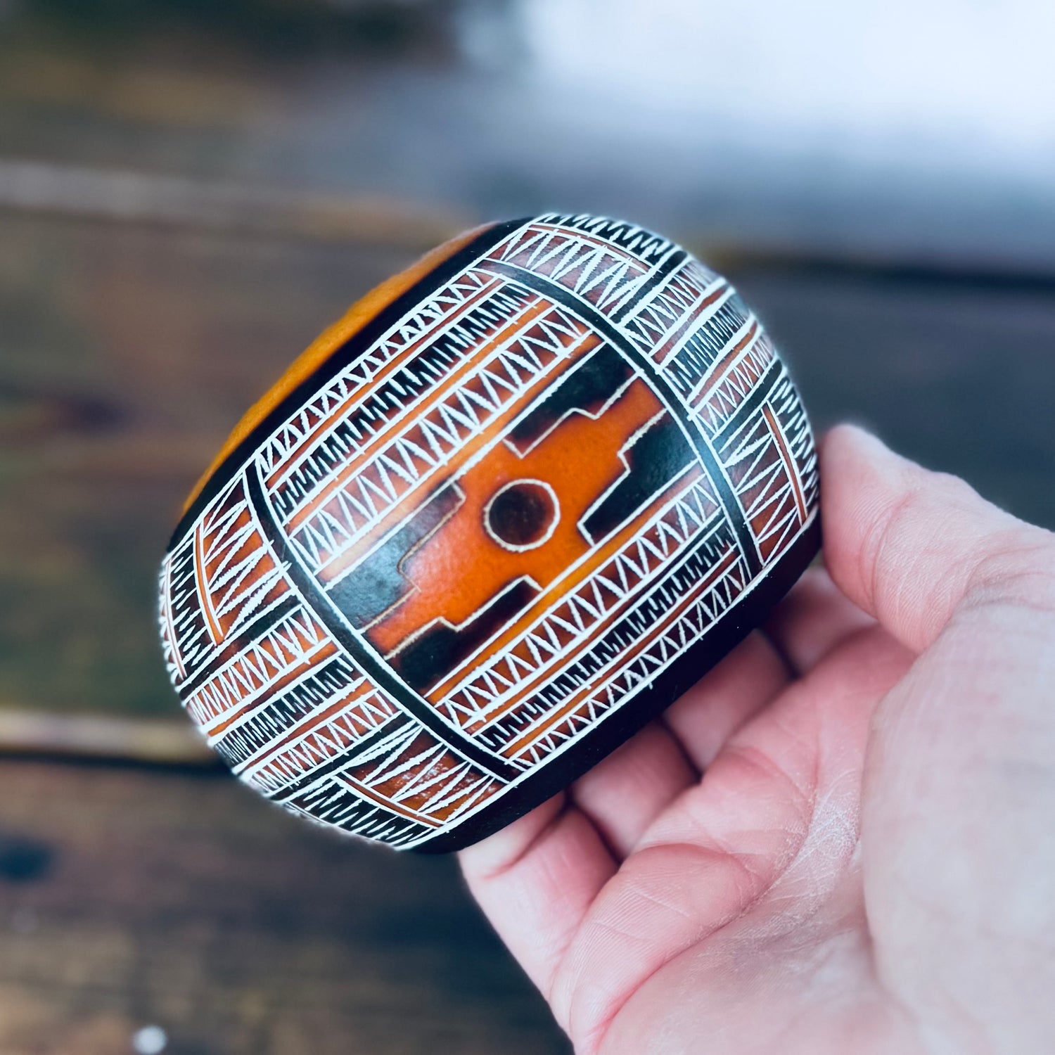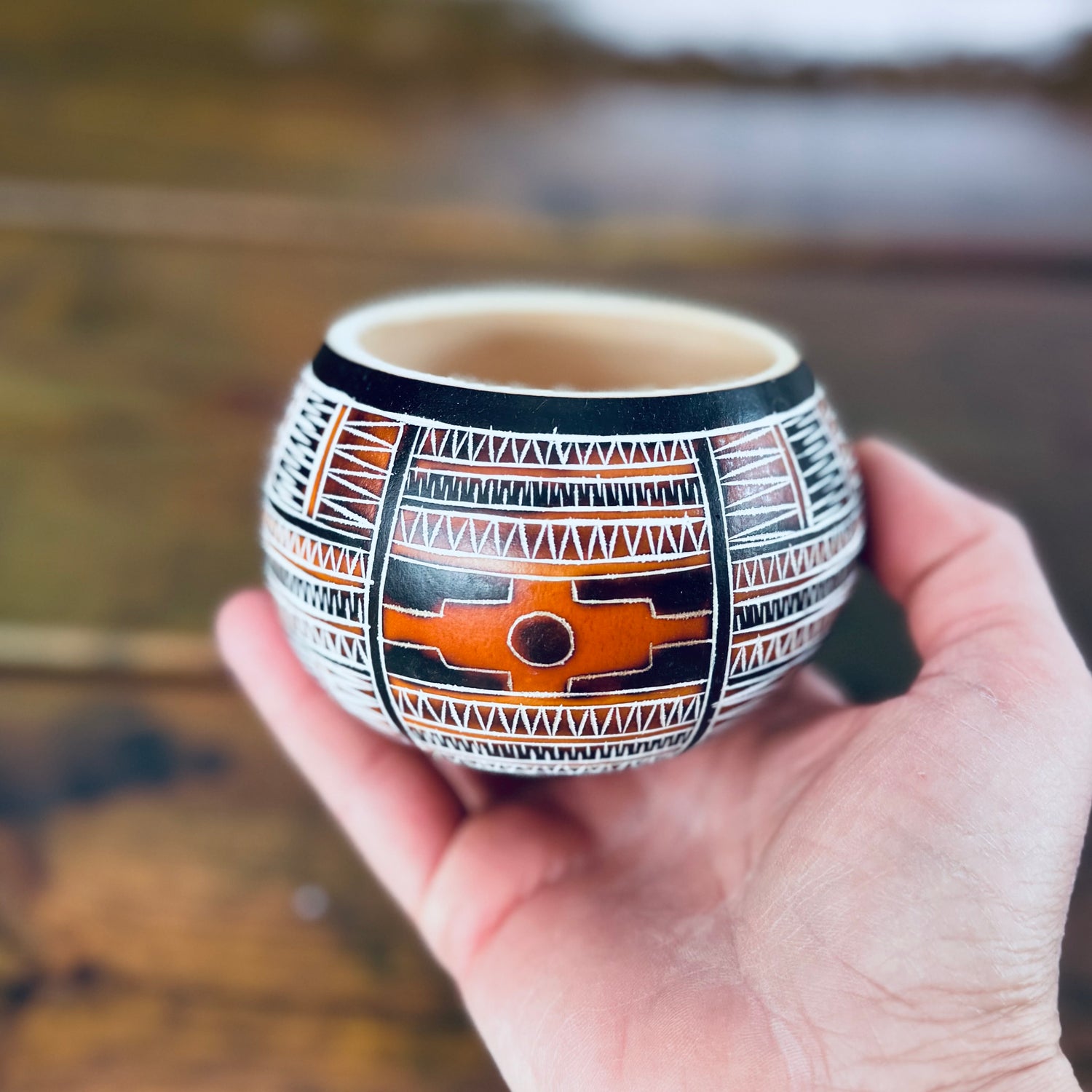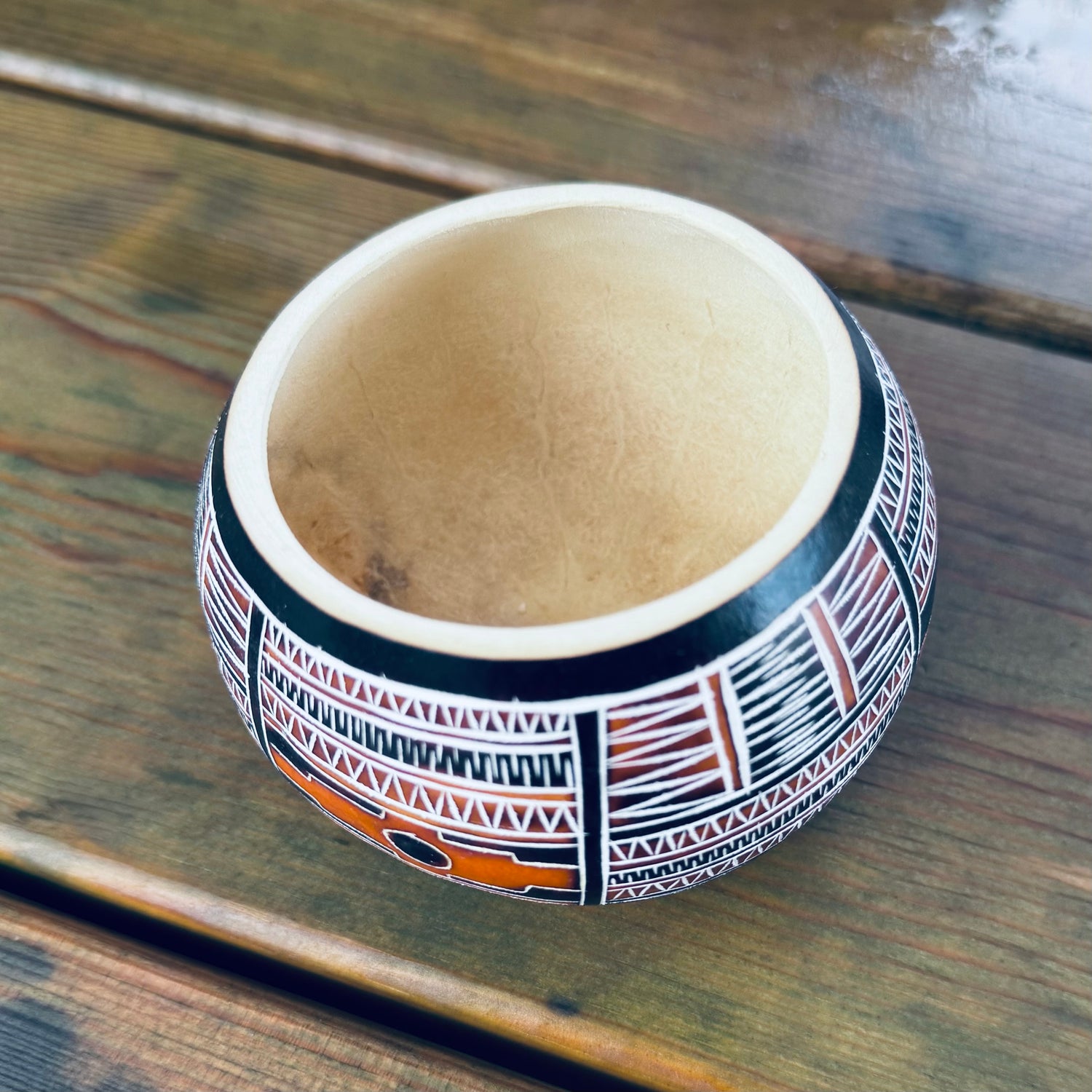 Voici notre Bol fabriqué à partir d'une calebasse naturelle et gravée avec la Chakana.